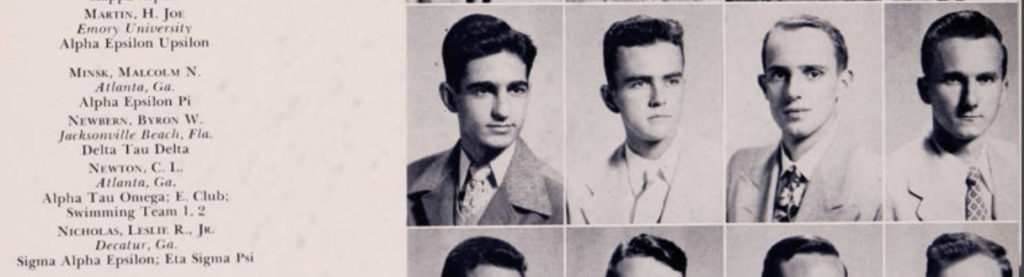 At Oxford College Leslie was in the International Relations Club, Phi Gamma, Vice President of the Florida Club, Debate Club, Associate Editor of the yearbook and President of the Freshman Class. The following yearbook photos, above and below, were from the 1948 Oxford College yearbook.